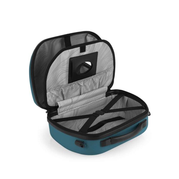 Unutrašnjost sadrži nekoliko pregrada različitih veličina, kao i strap i zip odeljke radi lakše organizacije.